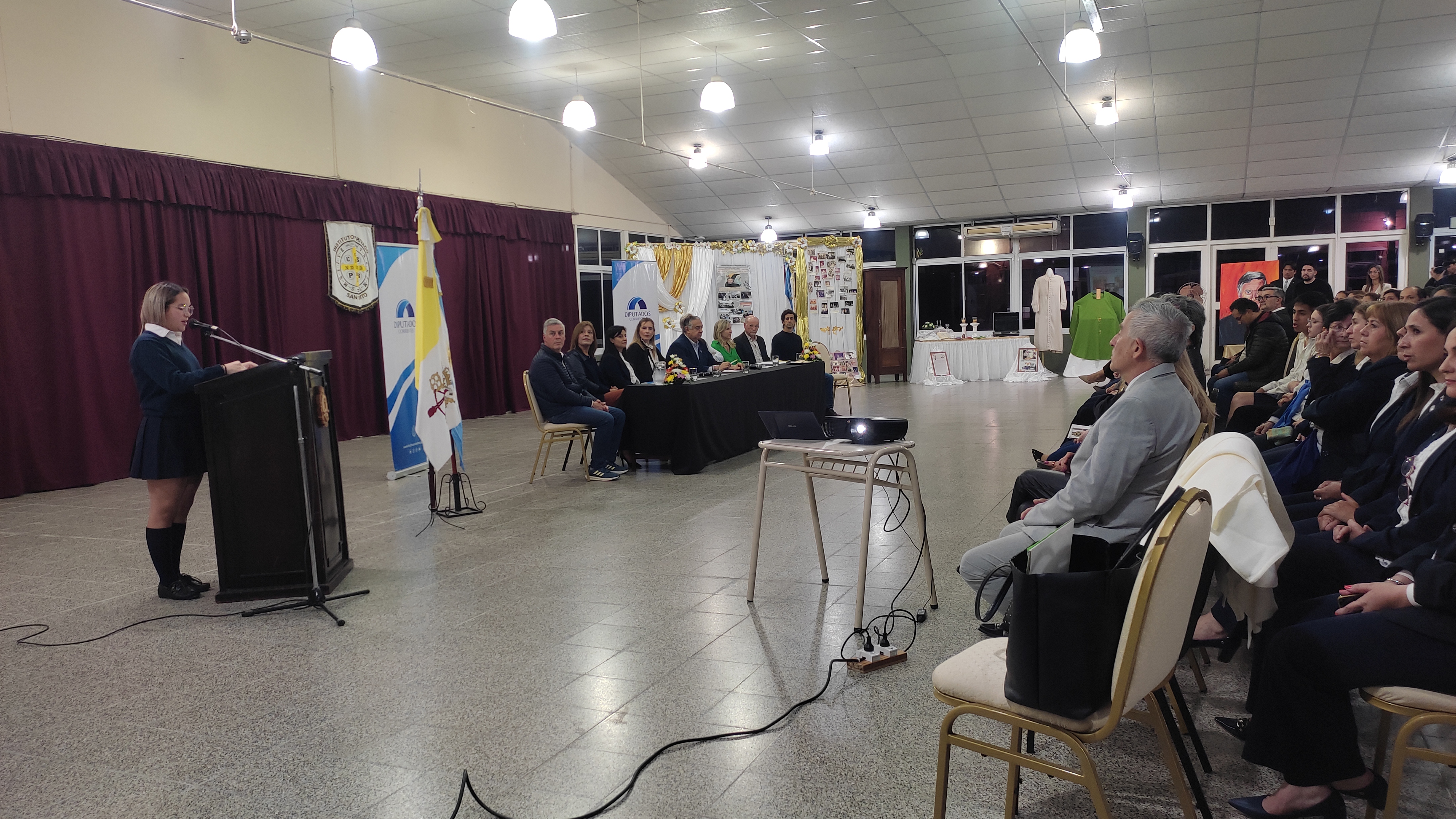 Tras las palabras de bienvenida a cargo de la Representante Legal de la institución educativa, Paola Conti, la alumna de sexto año Valentina Luján, detalló el trabajo presentado como parte del concurso “Soy Protagonista”, que derivó en la presentación formal del proyecto de ley, hoy en análisis, destacando las virtudes de quien conocieron por las obras heredadas del sacerdote. El trabajo fue impulsado y acompañado por la docente Lucía Correa, quien tuvo el mérito de entusiasmar a sus alumnos a la participación del certamen juvenil y cívico.
