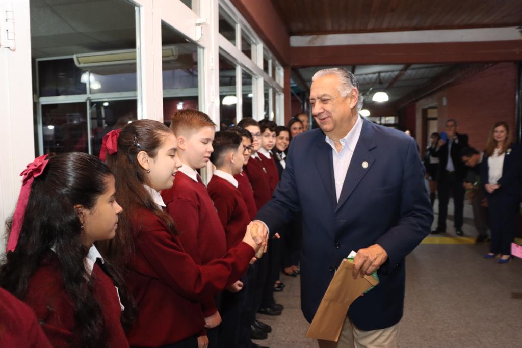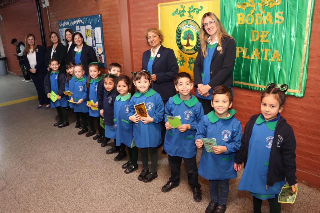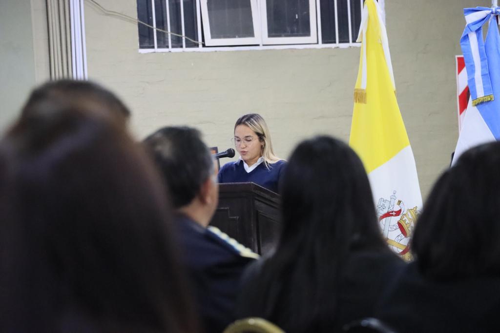 La bienvenida estuvo a cargo de la Rectora Verónica Sosa y la Representante Legal Paola, quienes estuvieron acompañadas de sus colegas del Nivel Inicial, Primario y Secundario diurnos y de la Escuela Profesional (oficios) todos ellos creados por el Padre Smiguel.