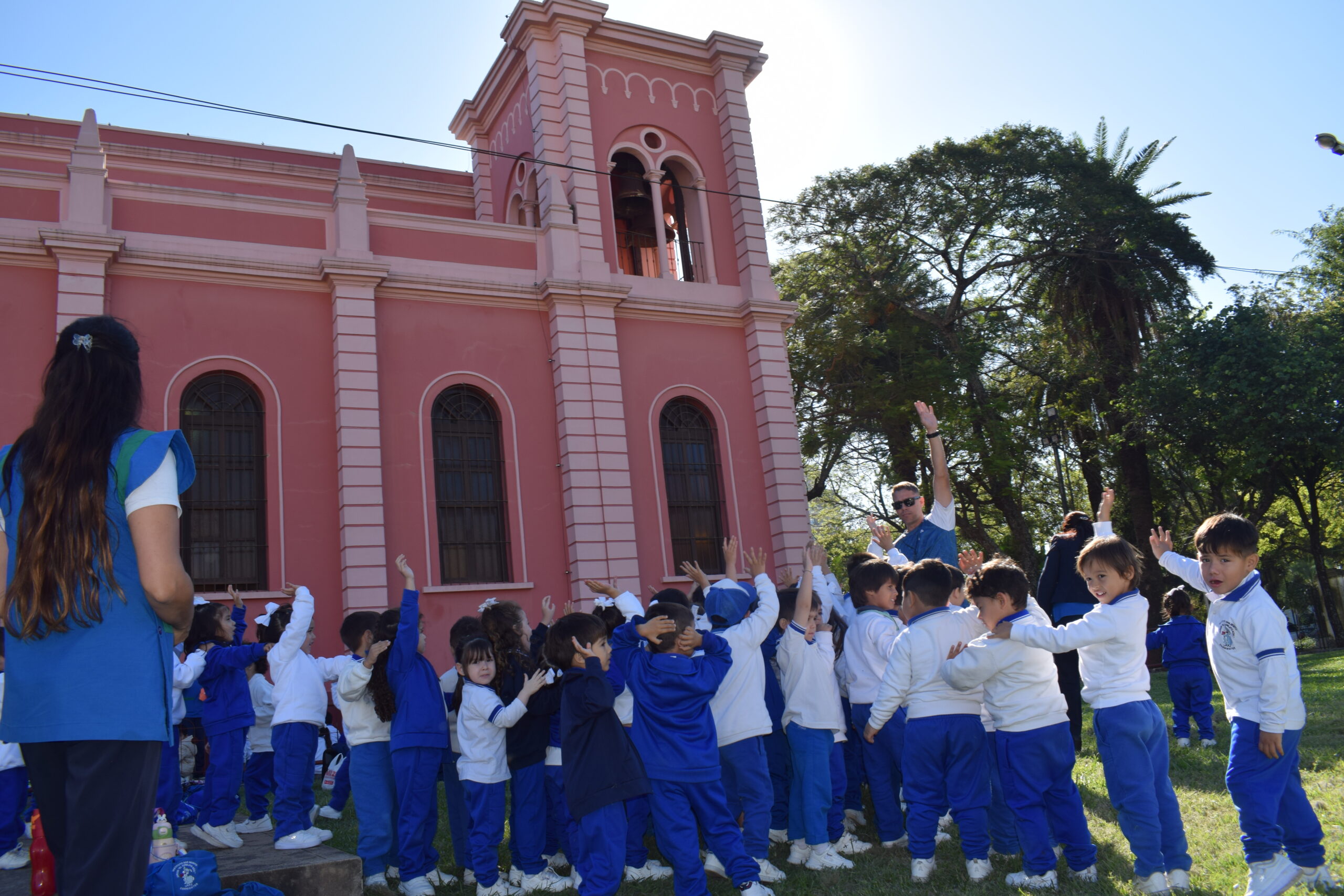 Salimos en comunidad hacia la Iglesia de la Cruz de los Milagros ⛪ preparándonos para su fiesta, en el marco de los 55 años del Jardín Conejito Azul 🎉🎂🐰