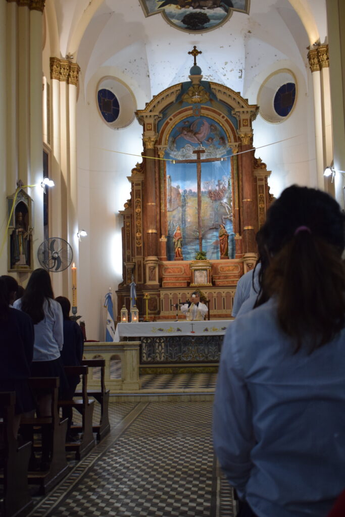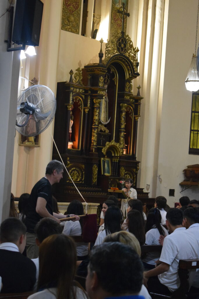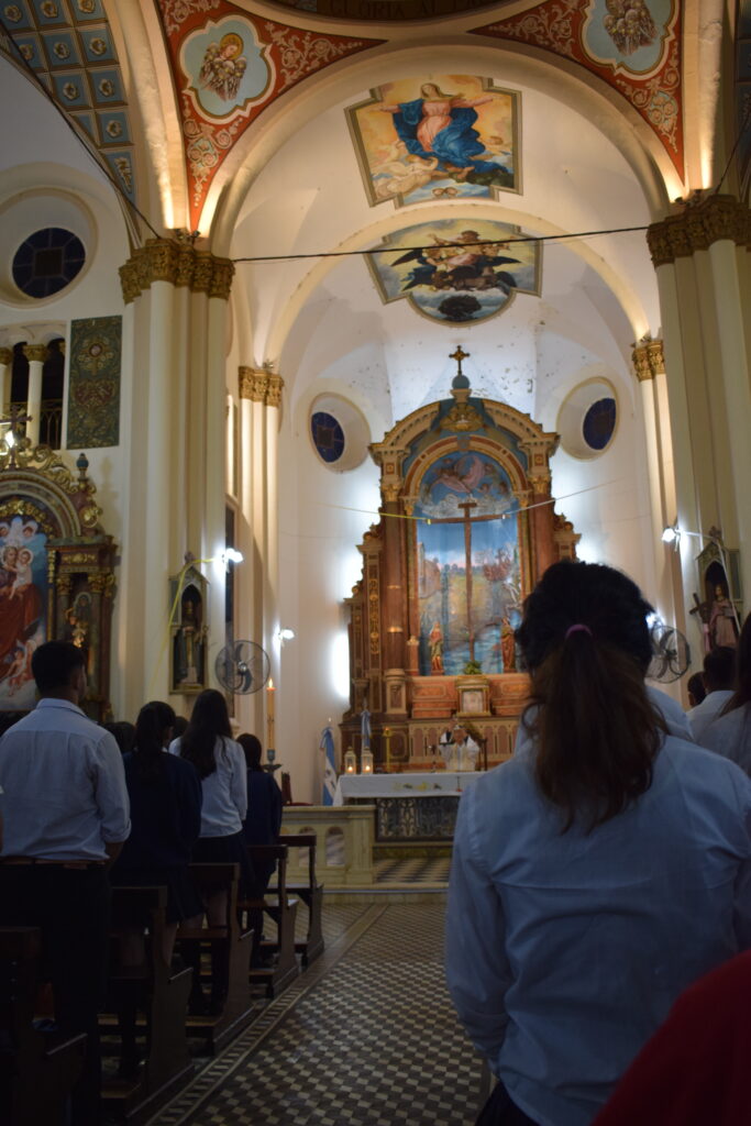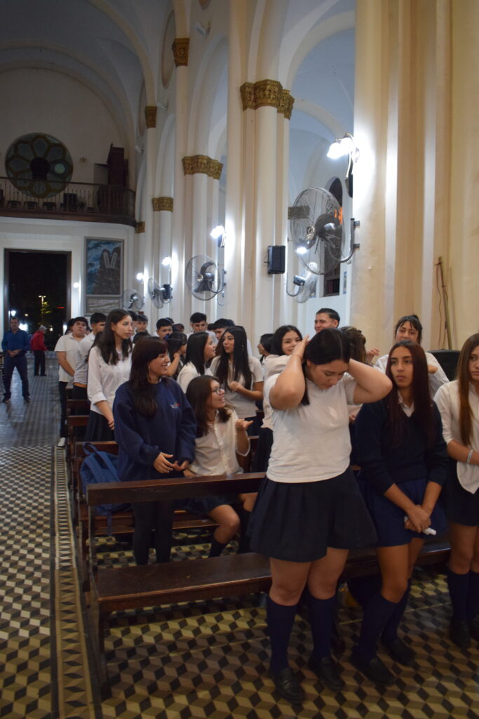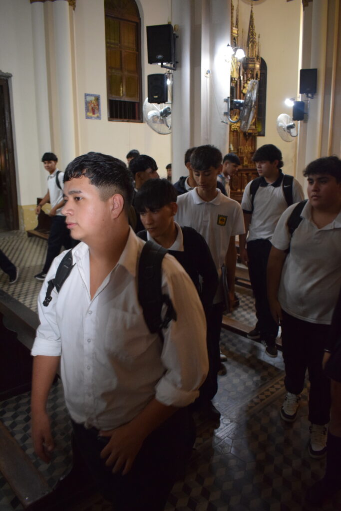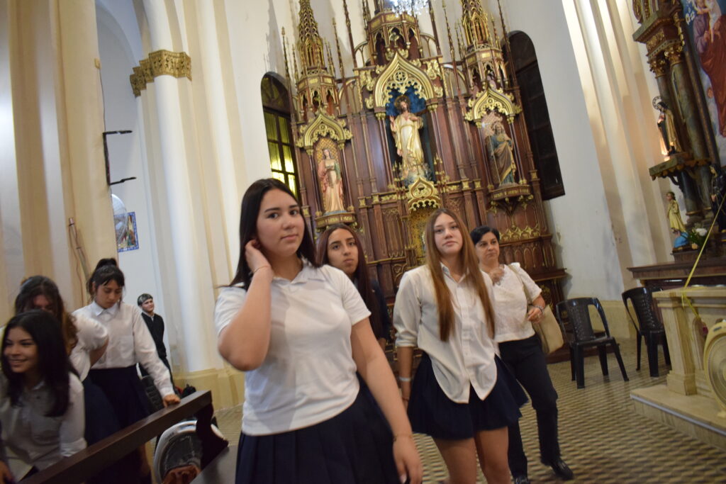 La jornada comenzó con una charla histórica en el interior del templo que brindaron servidoras del santuario, donde se abordó el valor cultural y religioso de este sitio emblemático de nuestra Ciudad. Posteriormente, se celebró la Santa Misa, propiciando un espacio de reflexión y encuentro comunitario. Los alumnos participaron de la eucaristía y luego recibieron la bendición del Párroco Ramón Billordo quien les felicitó por su comportamiento y respeto ante el lugar sagrado.