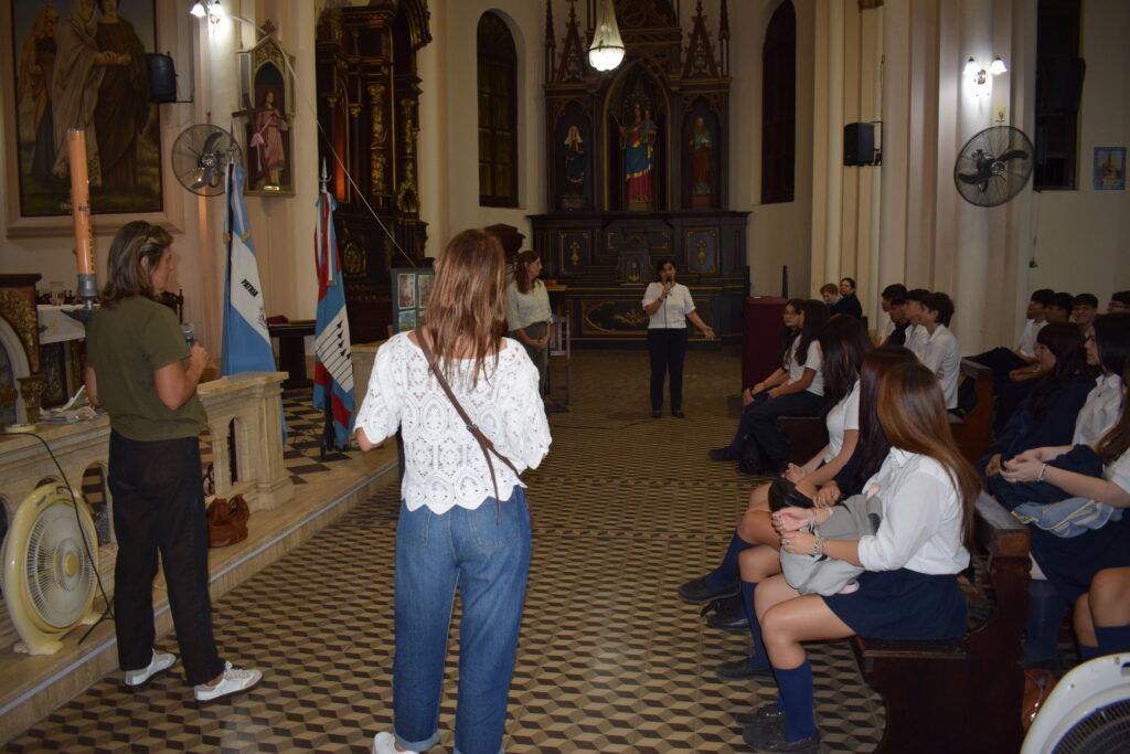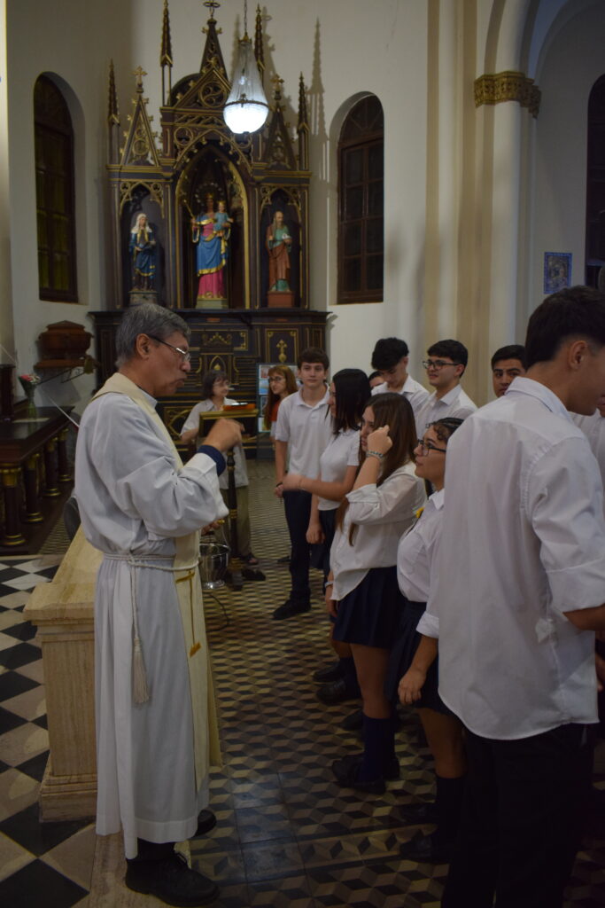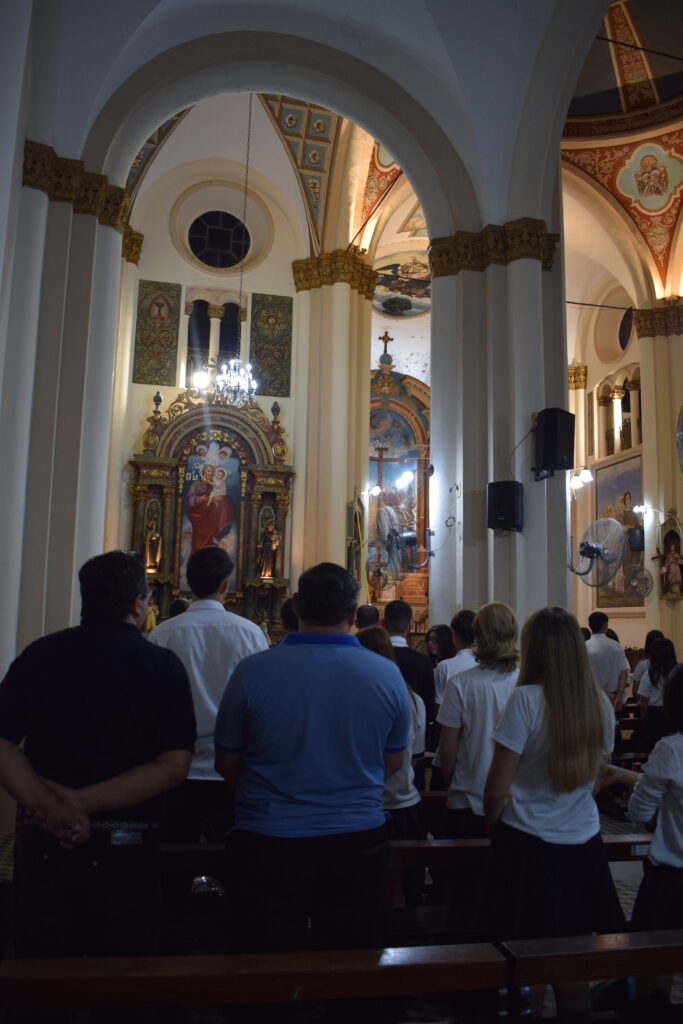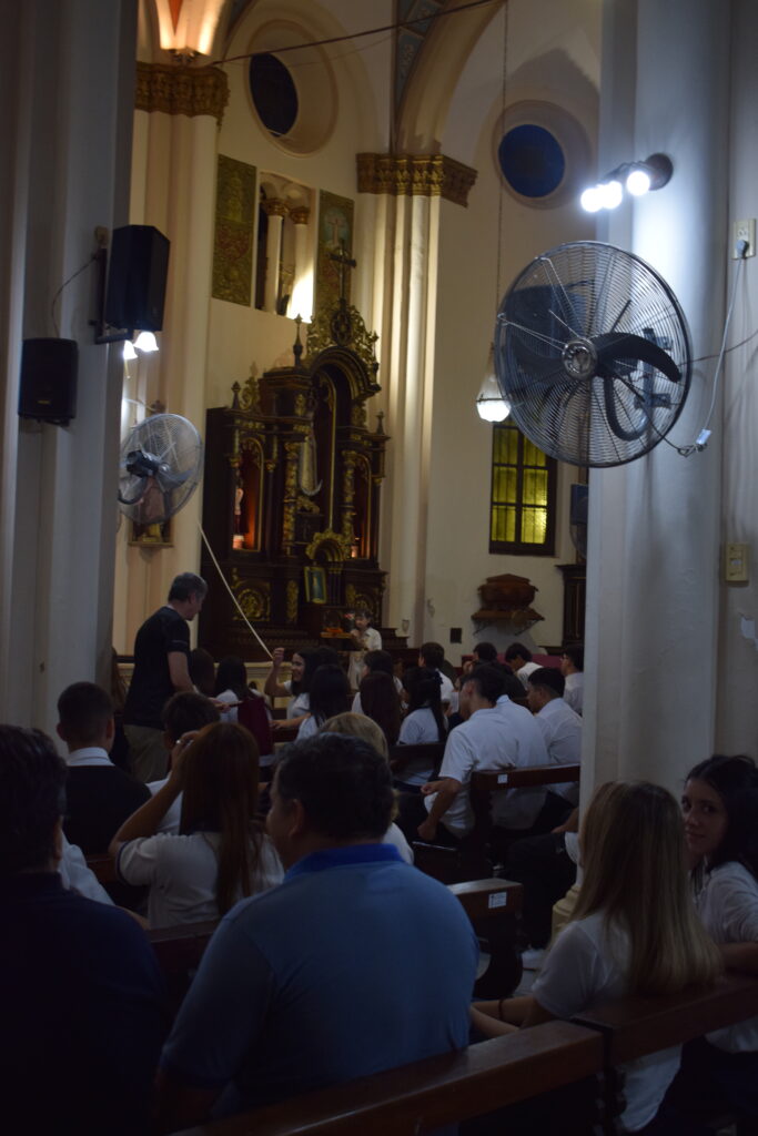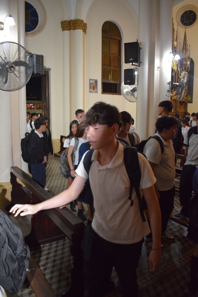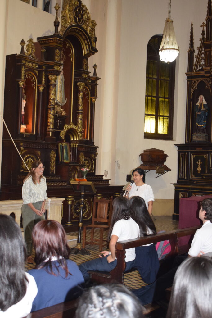 La jornada comenzó con una charla histórica en el interior del templo que brindaron servidoras del santuario, donde se abordó el valor cultural y religioso de este sitio emblemático de nuestra Ciudad. Posteriormente, se celebró la Santa Misa, propiciando un espacio de reflexión y encuentro comunitario. Los alumnos participaron de la eucaristía y luego recibieron la bendición del Párroco Ramón Billordo quien les felicitó por su comportamiento y respeto ante el lugar sagrado.