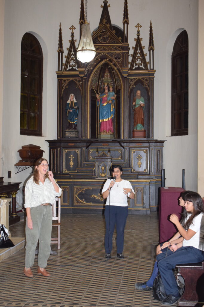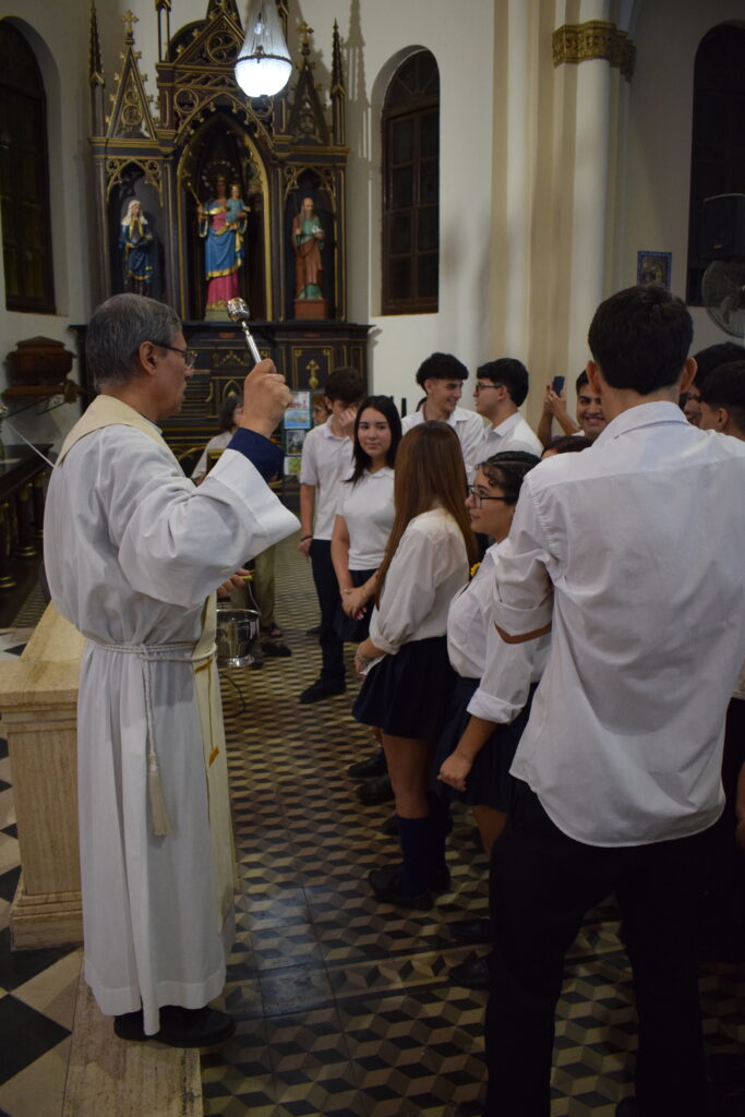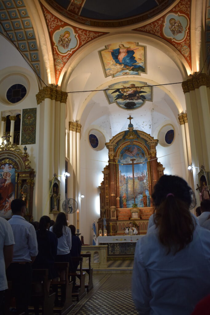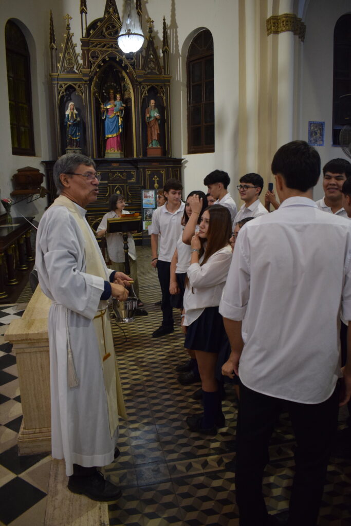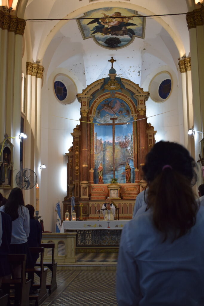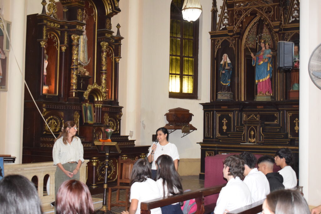 La jornada comenzó con una charla histórica en el interior del templo que brindaron servidoras del santuario, donde se abordó el valor cultural y religioso de este sitio emblemático de nuestra Ciudad. Posteriormente, se celebró la Santa Misa, propiciando un espacio de reflexión y encuentro comunitario. Los alumnos participaron de la eucaristía y luego recibieron la bendición del Párroco Ramón Billordo quien les felicitó por su comportamiento y respeto ante el lugar sagrado.